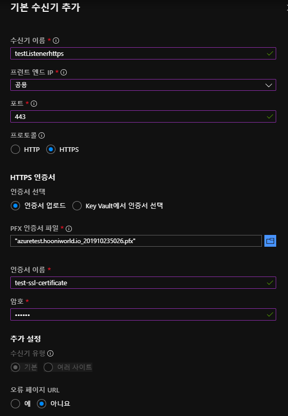 - 443 Port 추가하기 전 인증서 업로드 먼저 셋팅하고 포트 지정해준다