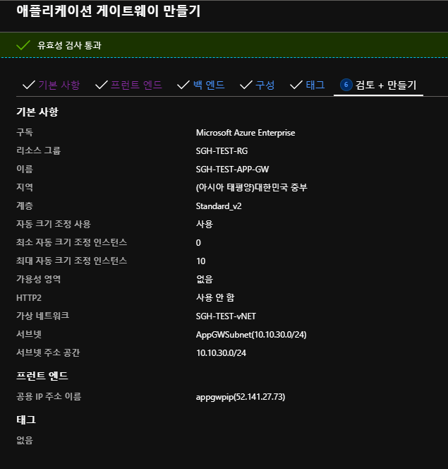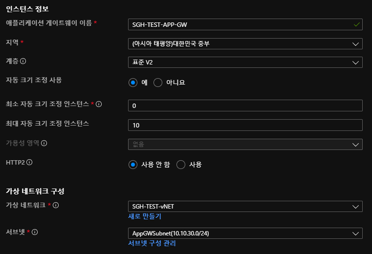 - 별도 Application GW Subnet 필요로 하며 다른 서브넷과 같이 사용할 수 없다