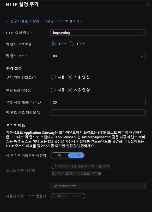 - HTTP 설정은 Health Check 로 생각하면 된다